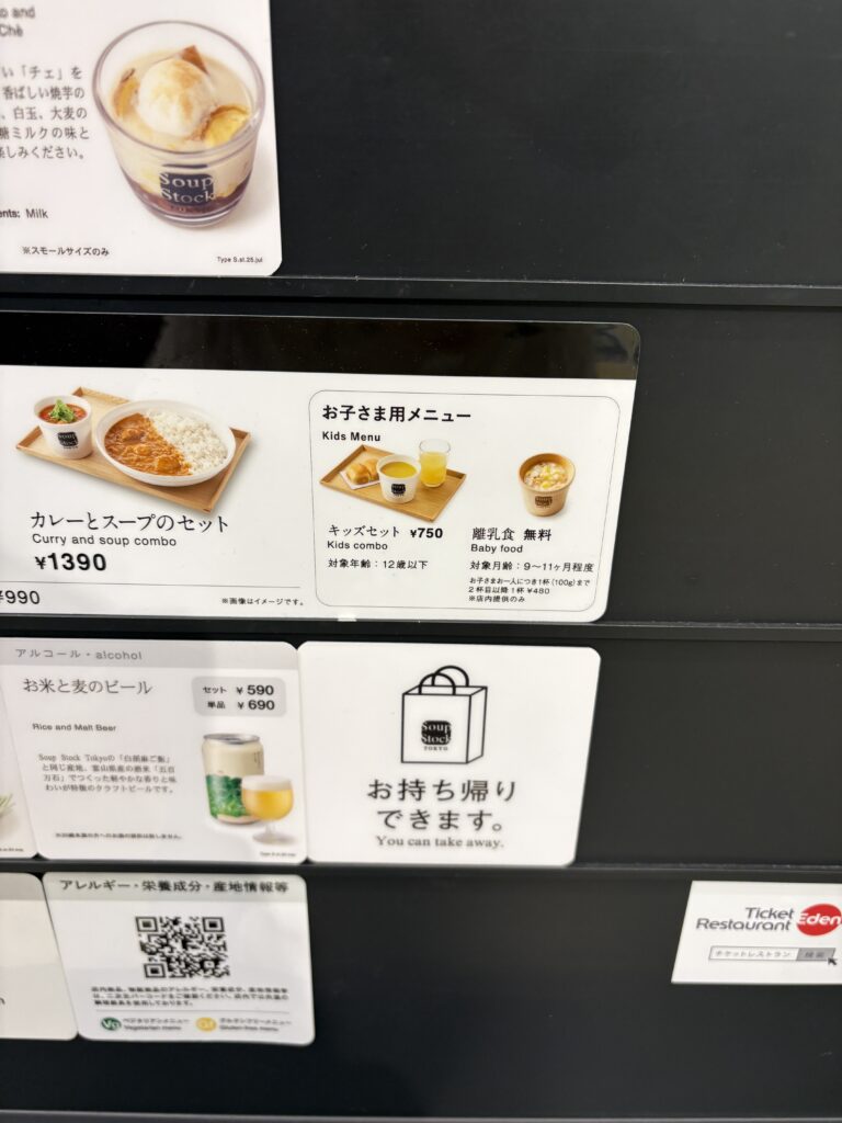 スープストックは、大人のメニューを注文すると離乳食を無料でもらえるのが本当にありがたいポイント。